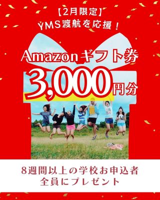 ⭐2026年渡航 YMS応援キャンペーン!2月中の学校お申込みでAmazonギフト券3,000円分をプレゼント